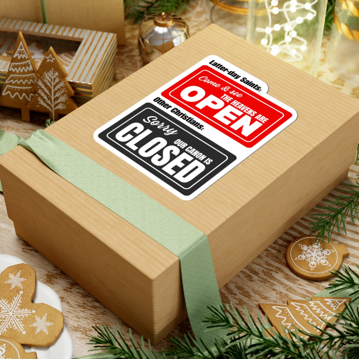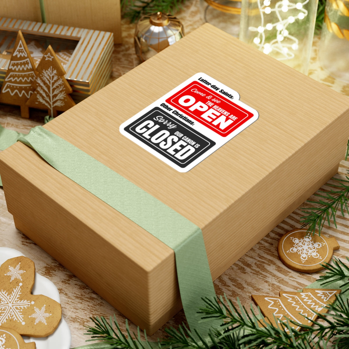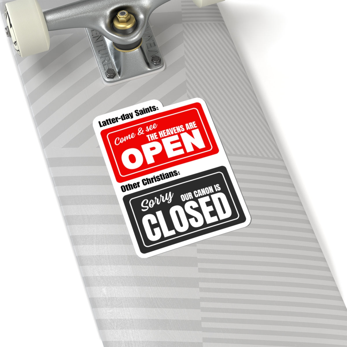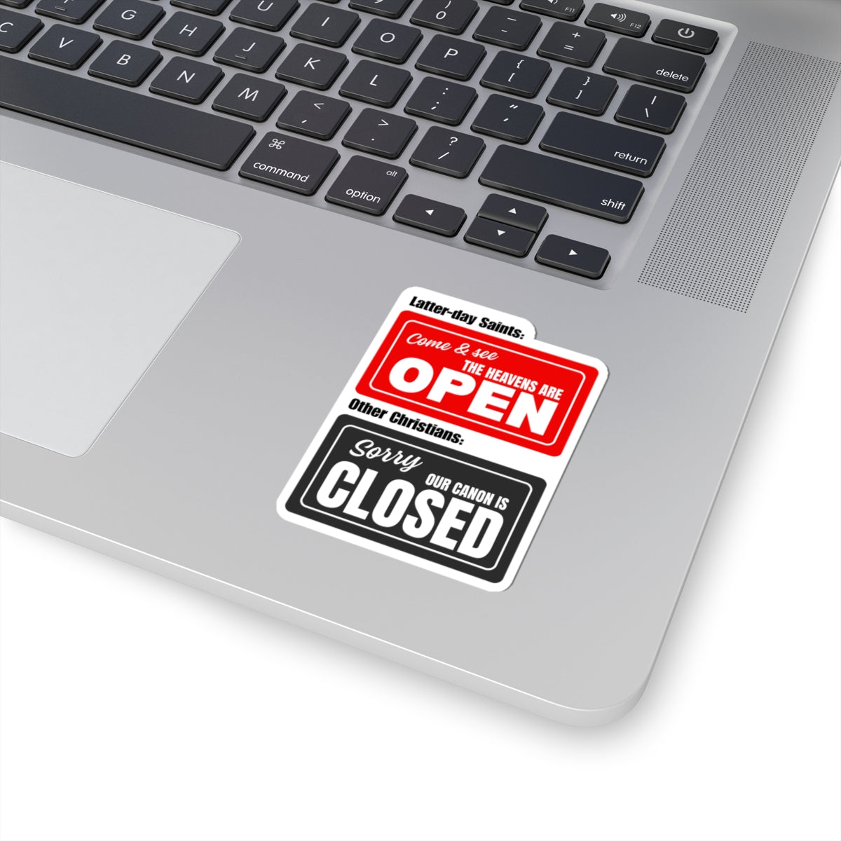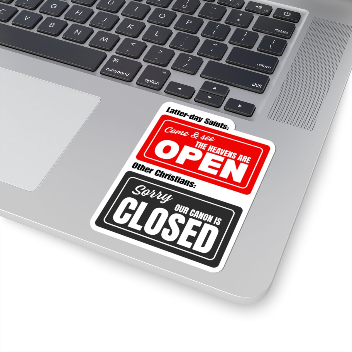 Express your faith with our "Come and See, the Heavens are Open" and "Sorry, Our Canon is Closed" Sticker! Made from durable vinyl, this sticker is perfect for your water bottle, tumbler, laptop, notebook, or any other place you'd put a sticker.